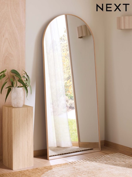 Oak Effect Extra Large Metal Arch Full Length Leaner Mirror