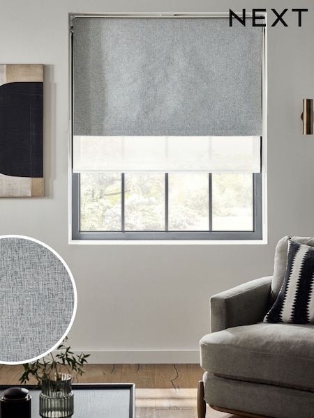 Grey Ready Made Blackout Sheer Double Roller Blinds