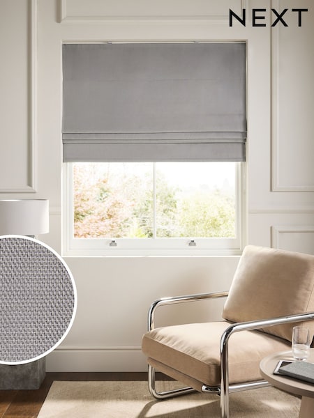 Grey Silver Ready Made Blackout Roman Blinds With Heavyweight Chenille