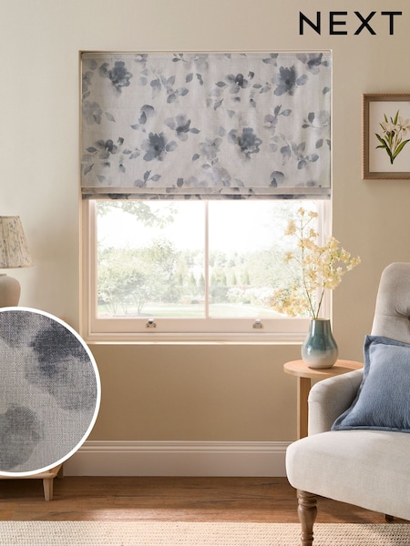 Grey Ready Made Blackout Thermal Floral Print Roman Blind