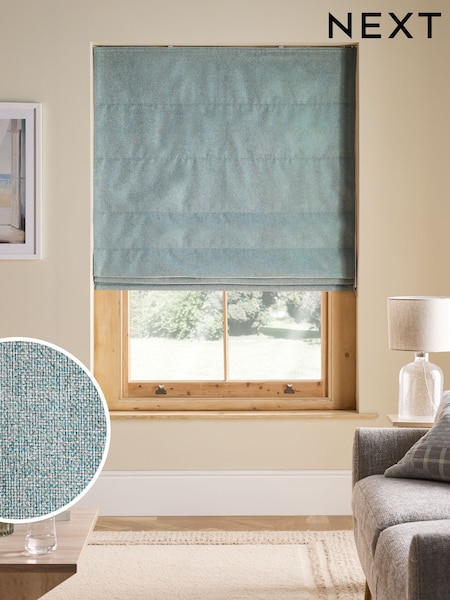 Blue Ready Made Blackout and Thermal Soft Marl Roman Blind