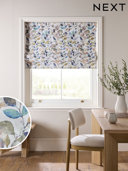Multicoloured Ready Made Blackout/Thermal Leaves Print Roman Blind