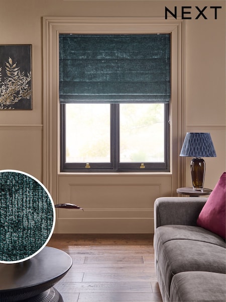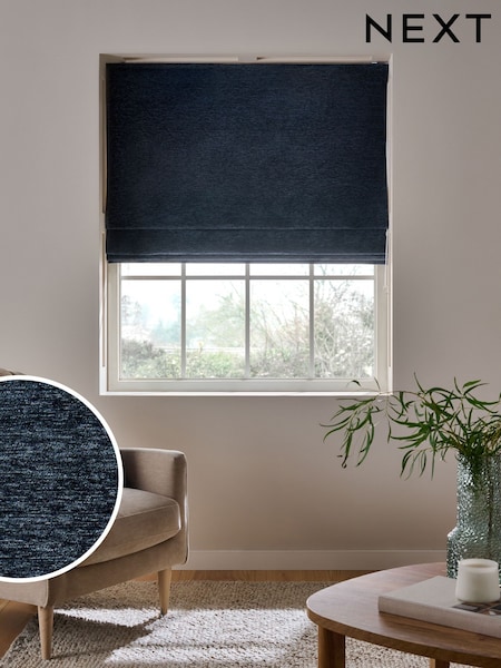 Navy Blue Ready Made Blackout Thermal Soft Touch Chenille Roman Blind