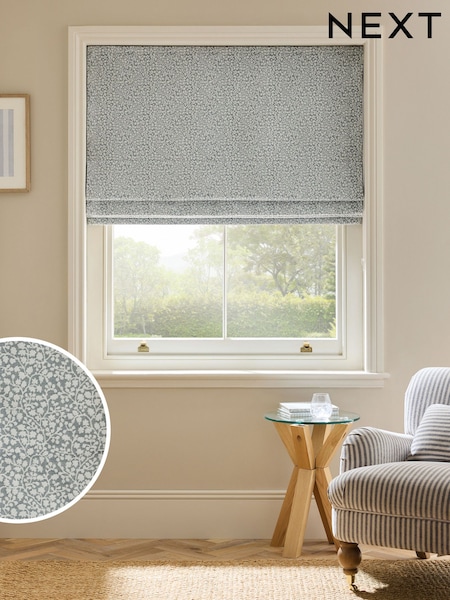 Blue Ready Made Blackout Thermal Floral Chenille Roman Blind