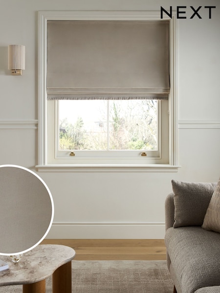 Natural Oatmeal Ready Made Blackout Thermal Matte Velvet Fringe Roman Blind