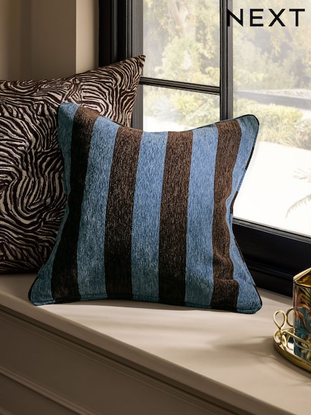 Blue/Brown 50 x 50cm Chenille Stripe Cushion
