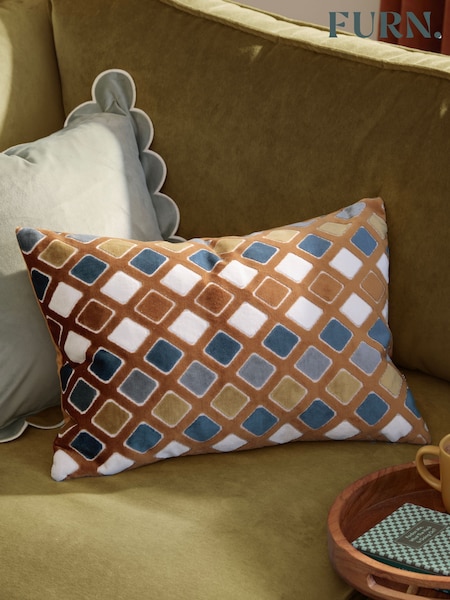 Furn Ginger Metro Blocks Velvet Jacquard Feather Filled Cushion