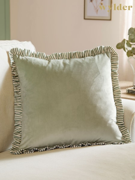 Wylder Sage Solene Ruffle Matte Velvet Fibre Filled Cushion