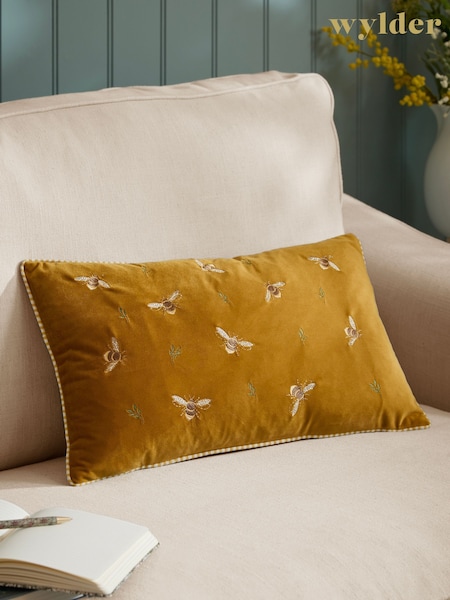 Wylder Honey Ramble Bees Embroidered Velvet Fibre Filled Cushion