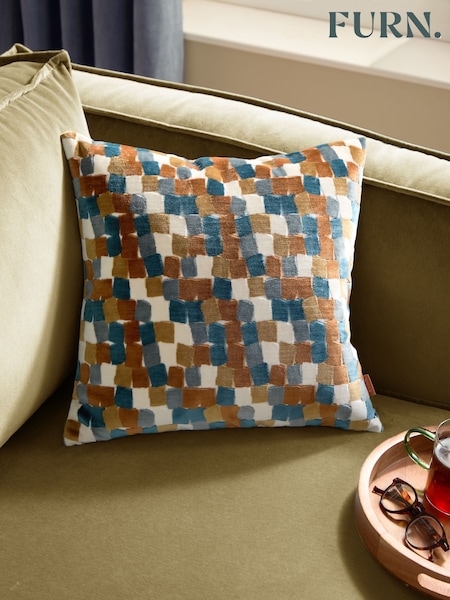 Furn Ginger Metro Blocks Velvet Jacquard Feather Filled Cushion