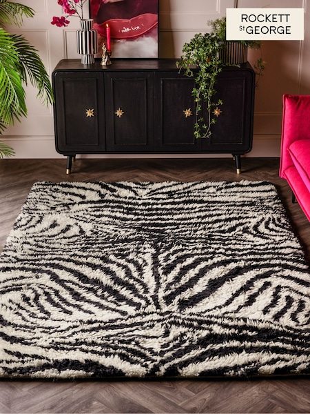 Rockett St George Black Dirty Zebra Shaggy Berber Wool Rug