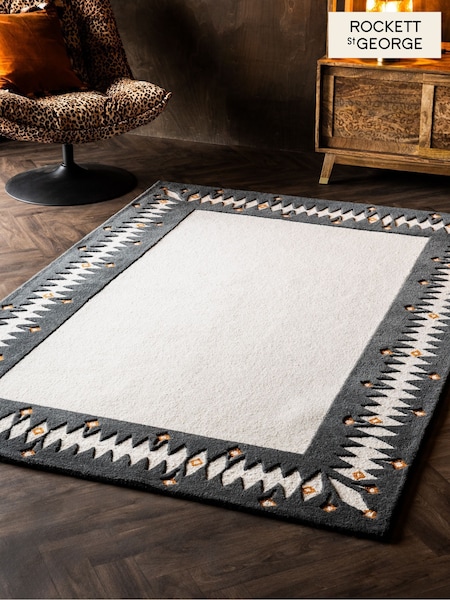 Rockett St George Black Diamond Border Wool Tufted Rug