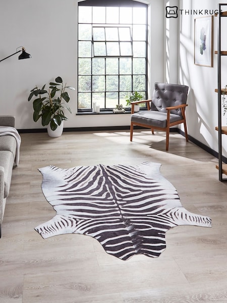 Think Rugs Black Faux Print Zebra Animal Print Rug