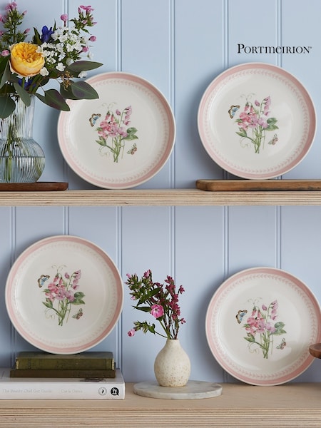 Portmeirion Set of 4 Pink Botanic Garden Sketchbook Dinner Plates