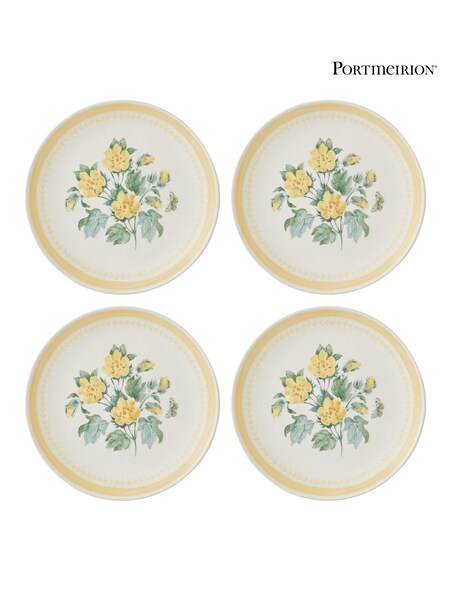 Portmeirion Set of 4 Yellow Botanic Garden Sketchbook Salad Plates