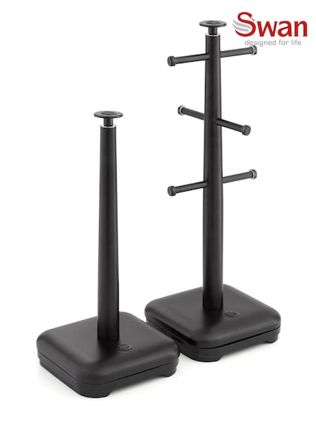 Swan Black Stealth Kitchen Towel Pole and Mug Tree Set