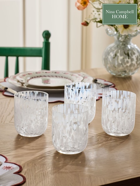 Nina Campbell Set of 4 White Confetti Tumbler Glasses