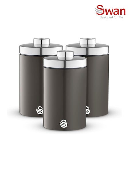 Swan Set of 3 Graphite Townhouse Canisters