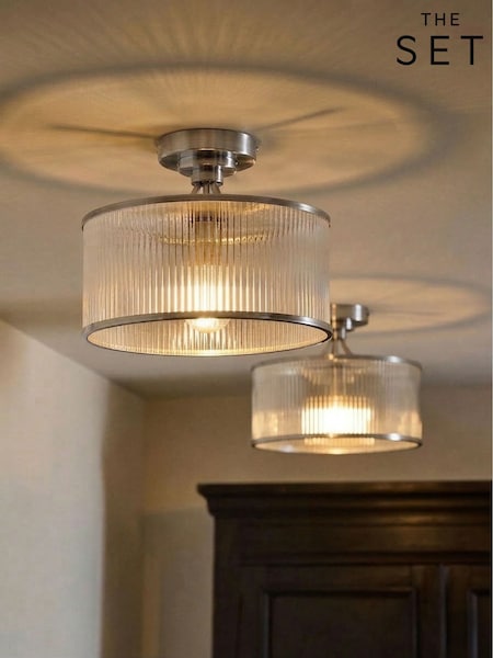 The Set 2 Pack Chrome Ribbed Glass Flush Ceiling Lights