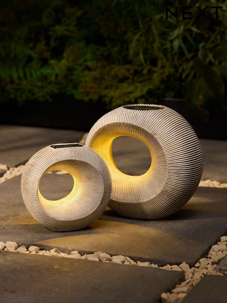 Natural Set of 2 Stones Sculpture Outdoor Solar Light