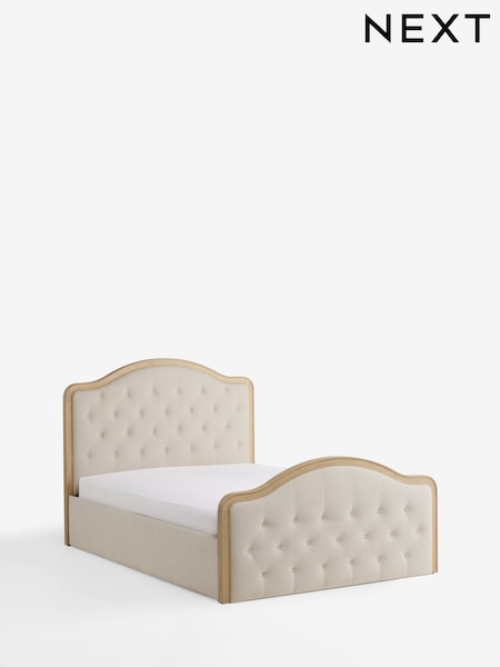 Tweedy Plain Light Natural Rose Buttoned Wooden Ottoman Storage Bed Frame