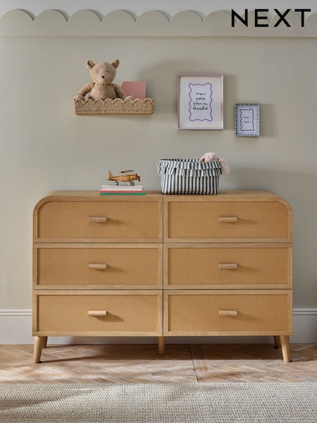 Rattan Felix Kids 6 Drawer Wide Chest of Drawers