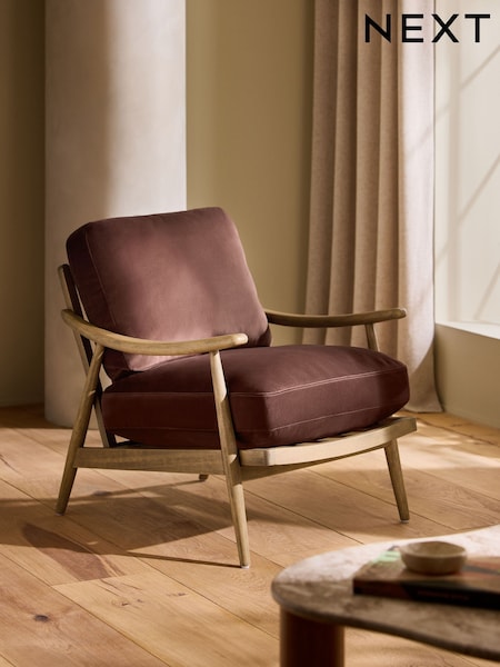Soft Velvet Chestnut Brown Hampton Wooden Accent Chair