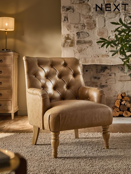 Vintaged Faux Leather Light Brown Wilson Highback Armchair