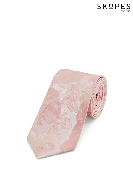 Skopes Pink Silk Floral Tie & Pocket Square Set