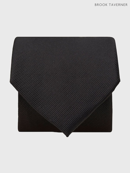 Brook Taverner Black Pure Silk Bow Tie & Pocket Square Set