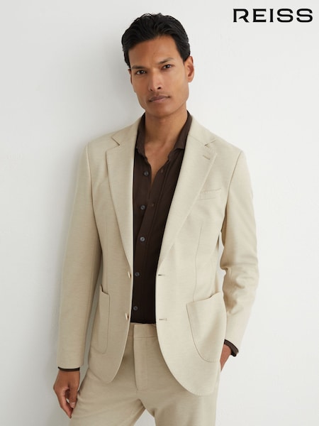 Reiss Stone Gerrard Textured Jersey Single-Breasted Suit Blazer Tailored Fit