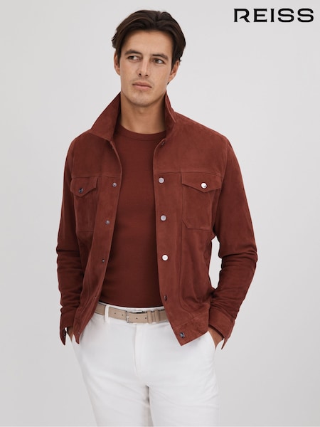 Reiss Rust Nico Suede Twin Pocket Overshirt