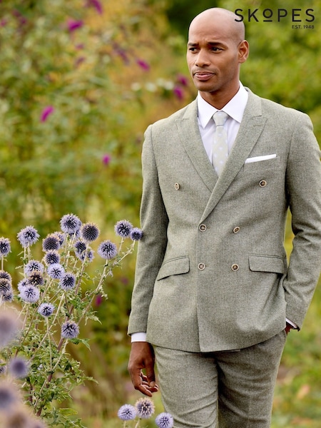 Skopes Green Double Breasted Jude Tweed Tailored Fit Suit Jacket