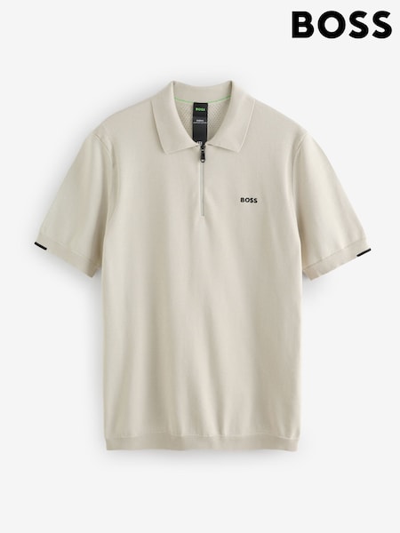BOSS Cream Ever Quarter Zip Knitted Polo Shirt