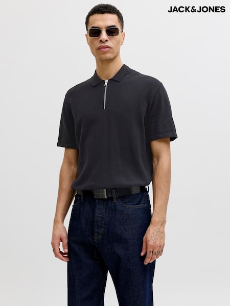 JACK & JONES Black Regular Fit Knit Zip Polo Shirt