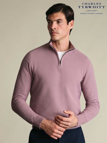 Charles Tyrwhitt Pink Honeycomb Cotton Zip Neck Jumper