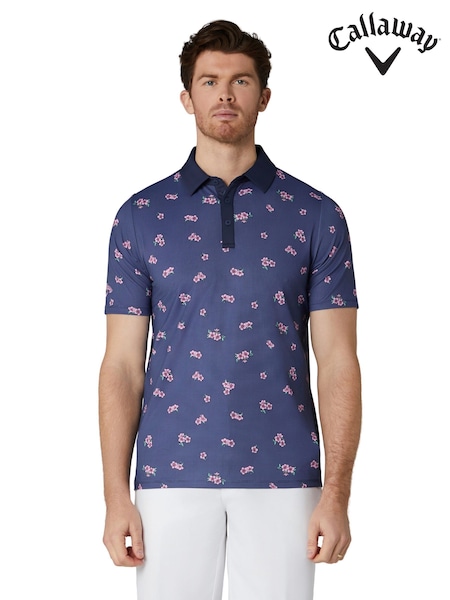 Callaway Golf Blue Dogwood Floral Polo Shirt