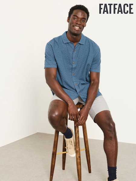 FatFace Blue Short Sleeve Embroidered Geo 100% Cotton Shirt