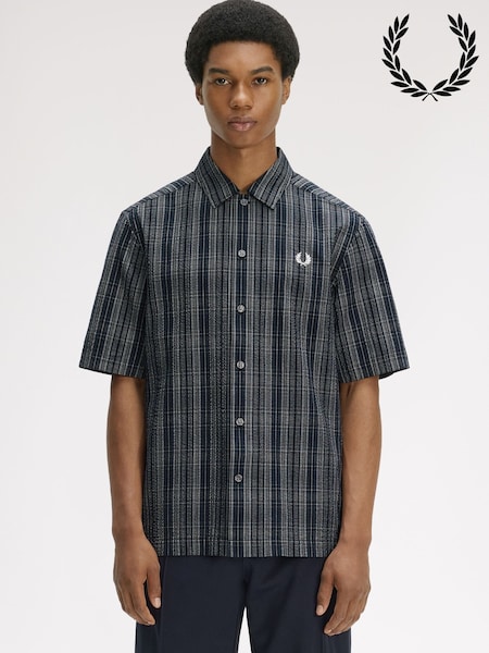 Fred Perry Blue Seersucker Check Shirt