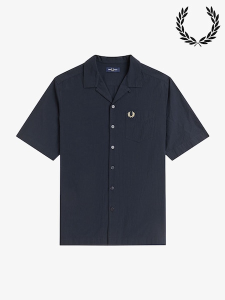Fred Perry Blue Seersucker Revere Collar Shirt