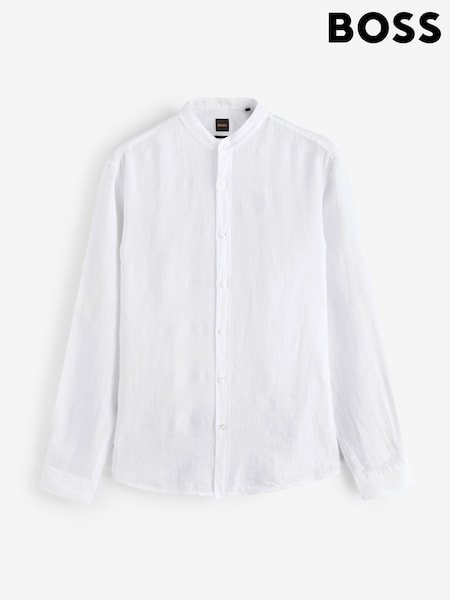 BOSS White Regular Fit Cotton Long Sleeve Oxford Shirt