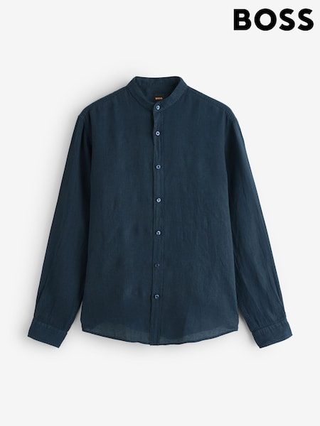 BOSS Blue Regular Fit Short Sleeve Linen Shirt