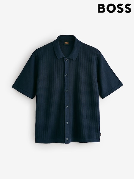 BOSS Blue Regular Fit Short Sleeve Linen Shirt