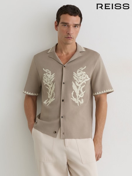 Reiss Champagne Folia Floral-Embroidered Knitted Shirt