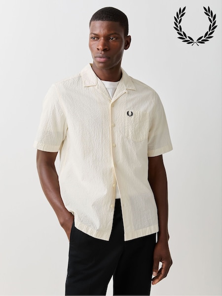 Charles Tyrwhitt Cream Slim Fit Short Sleeve Non-Iron 100% Cotton Leaf Print Shirt