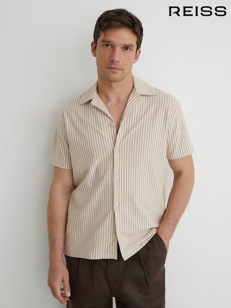 Reiss Stone/White Aurelia Cotton-Blend Stripe Cuban-Collar Shirt