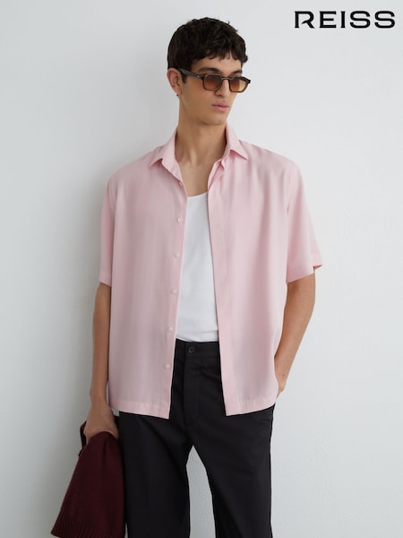 Reiss Soft Pink Supra Lyocell-Linen Short-Sleeve Shirt
