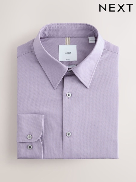 Lilac Purple Slim Fit Cotton Rich Textured Easy Care Smart Shirt