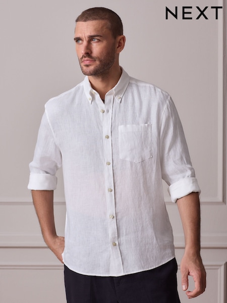 White Regular Fit Signature Twill Texture 100% Linen Short Sleeve Shirt
