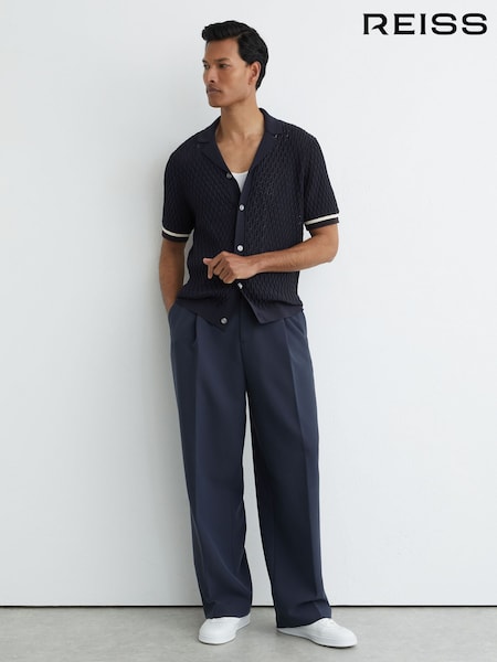 Reiss Navy Bilsby Cotton-Blend Geometric-Knit Tipped Shirt